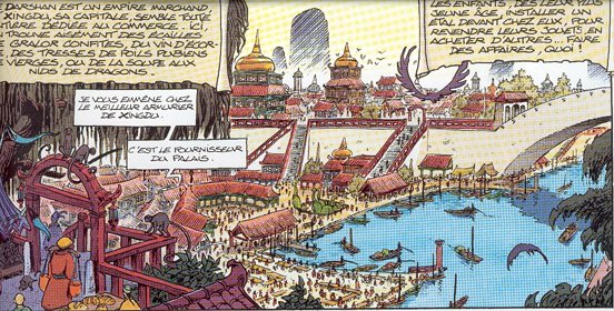 vitesses impressionnantes. Depuis la construction du monorail, le relais de Songho assure le transbordement des marchandises et des voyageurs entre le fleuve et le train. On y trouve des Yaryks (sorte de gros bisons) pour les courageux qui se dirigent vers les montagnes du Haut Darshan. |